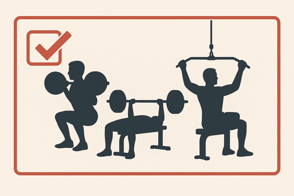 初心者は、スクワット・ベンチプレス・ラットプルダウンの3種目を中心に取り組むのがオススメ。